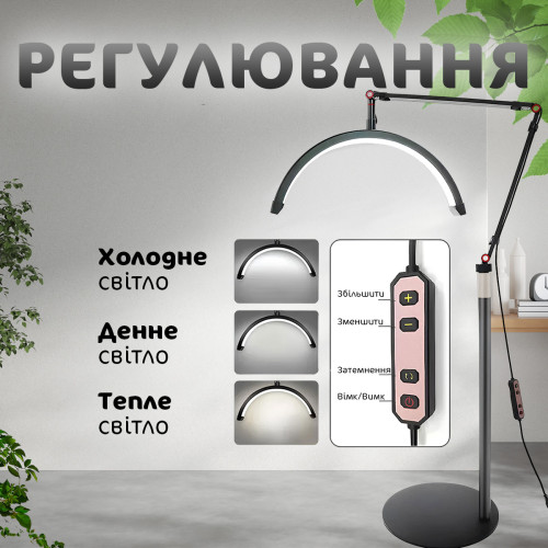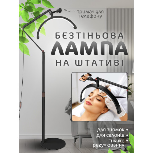 Лампа для наращивания ресниц Напольная LED лампа для маникюра косметолога тату с креплением для телефона с пультом управления Moon lamp Pavlysh M2X Black