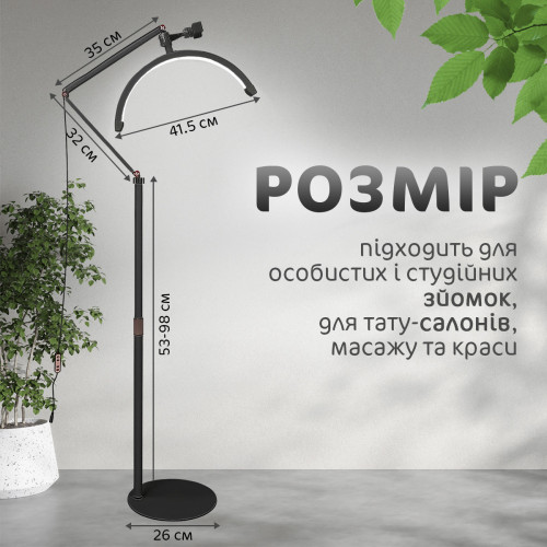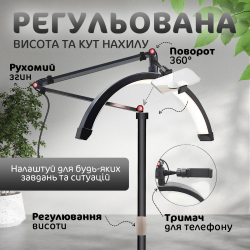 Напольная LED-лампа для маникюра, косметолога, тату с креплением для телефона и пультом управления