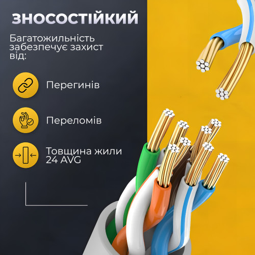 Патч корд CAT5e 2 м LAN UTP сетевой кабель для интернета (Gigabit RJ45 Ethernet, 1 Гбіт/с) Pavlysh PK-5E2WH
