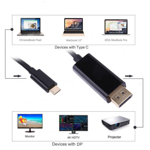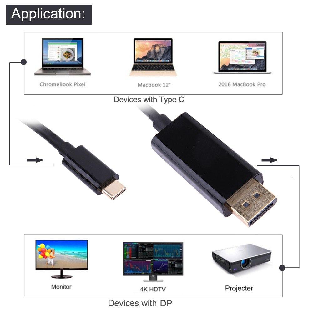 Адаптер и кабель в одном устройстве: этот кабель USB-C к DisplayPort позволяет подключать MacBook, ChromeBook Pixel и другие ноутбуки с USB-C к монитору 4K DP одним кабелем без дополнительных переходников.