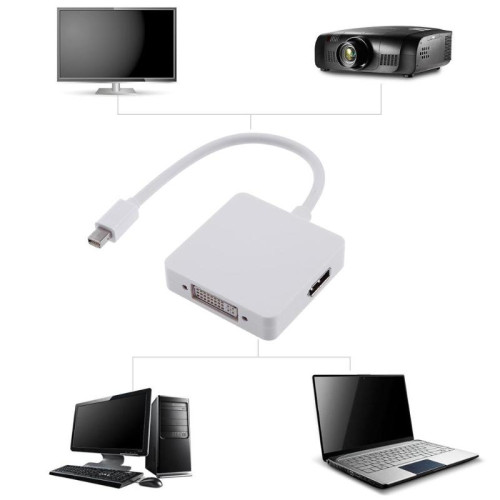 Адаптер Mini DP на HDMI DVI DP предназначен вывода изображения с компьютеров или ноутбуков с Mini DisplayPort или Thunderbolt 2 на экран монитора, проектора или телевизора. Небольшой видео адаптер объединяет в себе все основные цифровые видео интерфейсы: HDMI, DVI, DisplayPort