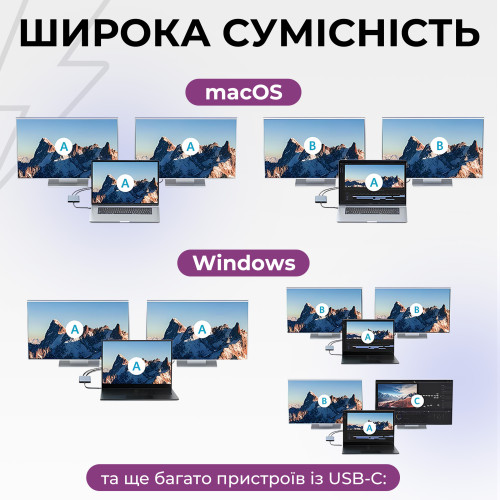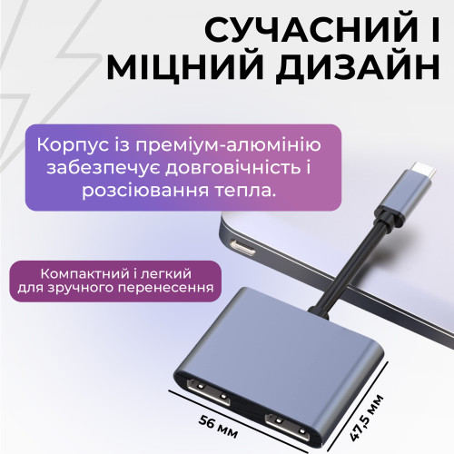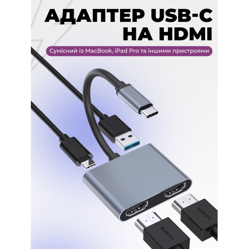USB хаб на 2 х HDMI USB 3.0 PD Разветвитель для ноутбука переходник Type-C Адаптер USB C - Dual HDMI PAVLYSH P4
