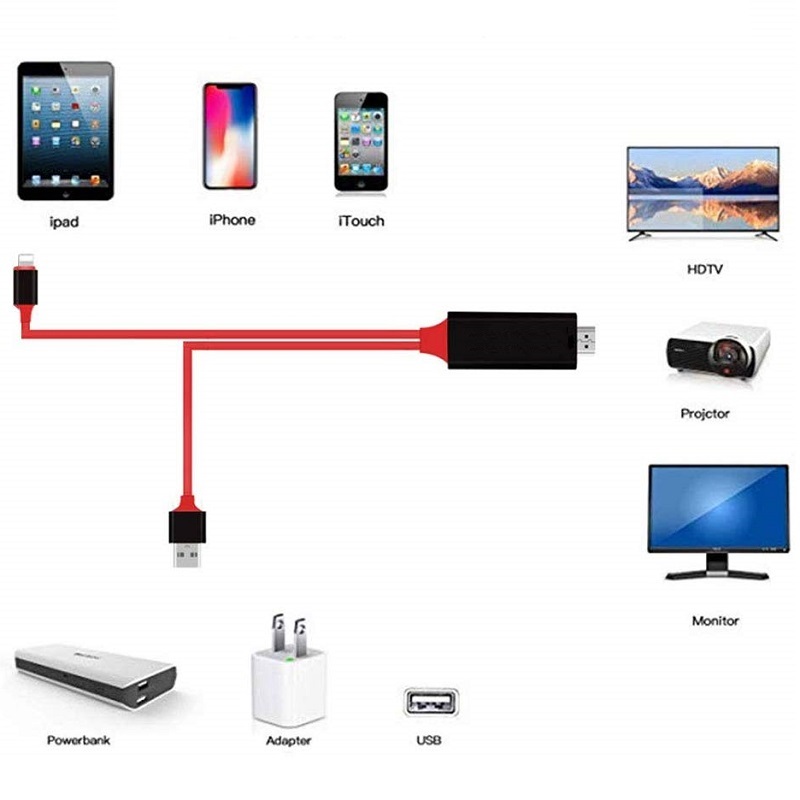 - Поддержка аудио / видео / изображений с iPhone iPad, преобразование в HD цифровой сигнал для всех устройств с портами HDMI.