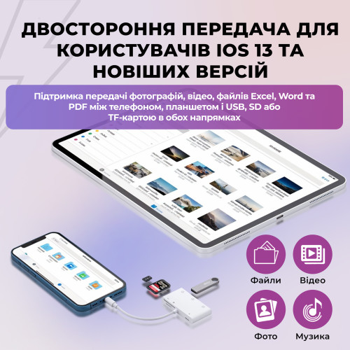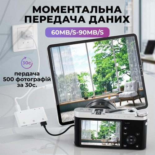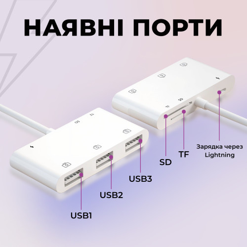 Характеристики Lightning - Reader SD Micro SD карт 3 х USB с портом зарядки
