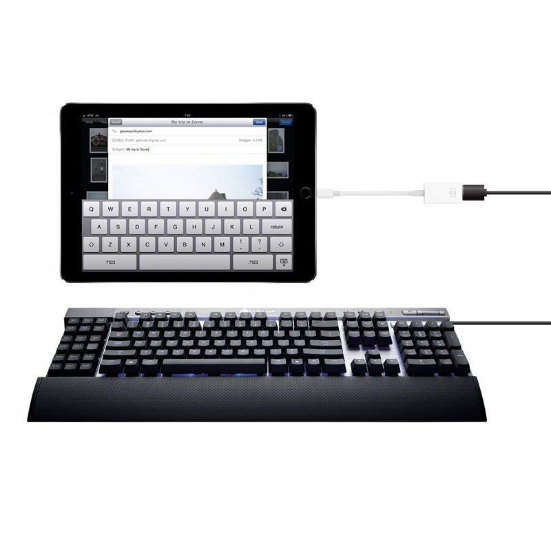 Расширяй свои возможности: адаптер Lightning to USB позволяет подключать к мобильным устройствам Apple клавиатуру для быстрого набора текста.