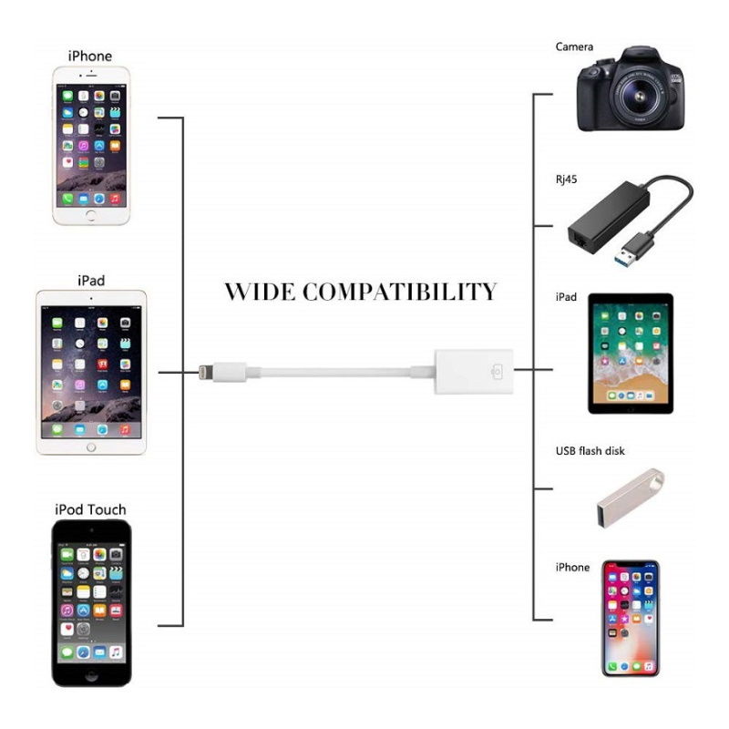Широкая совместимость: USB-адаптер камеры поддерживает стандартные форматы фотографий, такие как JPEG и RAW, а также форматы видео SD и HD, включая H.264 и MPEG-4; совместимость с iPhone 11/11 Pro / 11 Pro Max / Xs / Xs Max / X / 8/8 Plus / 7 / 7Plus / 6/6 Plus / 5 / 5S / SE и iPad Air / Mini / Pro;