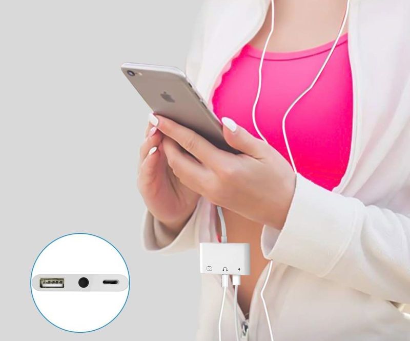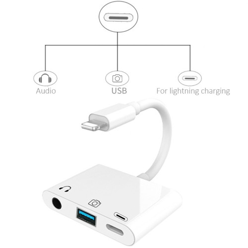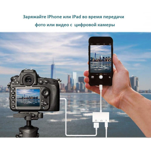 | Описание | Благодаря адаптеру можно одновременно слушать музыку и заряжать iPhone или iPad, а также подключить различные устройства к USB разъему переходника |