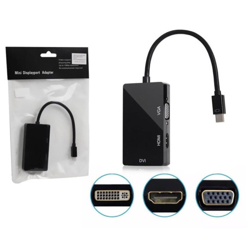 3-в-1 адаптер Mini-DisplayPort «папа» на HDMI / DVI / VGA предназначен для моделей iMac и MacBook с Mini DP ( DisplayPort ). При помощи этого видеоадаптера Вы легко сможете вывести изображение и видео со своего компьютера на большой дисплей монитора, проектора или телевизора TV HDTV. Автоматическое определение дисплея, не требует дополнительного источника питания. Поддержка максимального разрешения 1920x1080P при 60 Гц для всех портов HDMI / DVI / VGA. HDMI порт поддерживает вывод звука и видео, DVI и VGA порты только видео. Переходник Mini Display Port на DVI HDMI VGA может работать только с одним внешним монитором, подключение нескольких мониторов не поддерживается. Кроме видеоадаптера mini DP на HDMI VGA DVI Вам потребуется видеокабель с ответным разъемом (не идет в комплекте). Может преобразовывать сигнал только из Mini DisplayPort в HDMI / DVI / VGA. Это не двунаправленный адаптер.