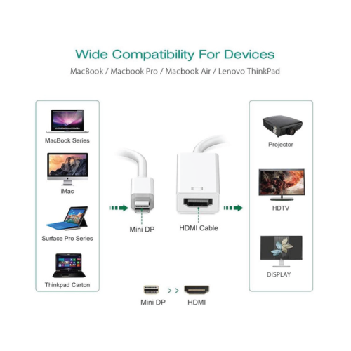 HDMI-адаптер Mini DisplayPort поддерживает разрешение высокой четкости 1080p на телевизорах с разрешением 1920 x 1080 пикселей, а также передает аудиосигнал высокой качества. Он совместим с мини-дисплеями Passive / DP ++ / Dual-mode на Mac и ПК, а также с портами Thunderbolt на Mac.