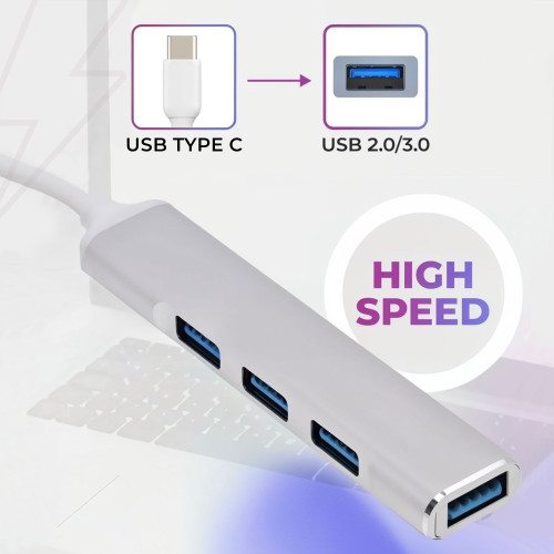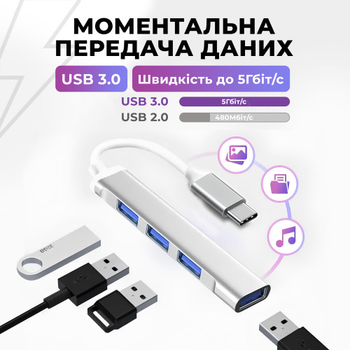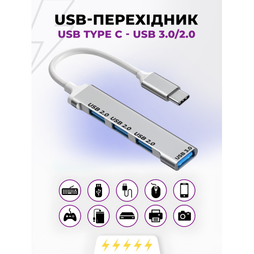 USB хаб на 4 порта с разъемом USB-C сильно упростит пользователей Macbook, Сhromebook и других новейших ноутбуков. На работе или дома у нас чаще всего уже все настроено и вполне можно обойтись штатными разъемами, но как только мы выходим из привычного ежедневного круга или попадаем в новую среду могут возникнуть ситуации ,когда отсутствие обычного, привычного USB порта сильно может стать настоящей проблемой. Небольшой адаптер с Type-C на USB 3.0 совершенно точно пригодится Вам в командировке, во время встречь с деловыми партнерами или на отдыхе вне дома.