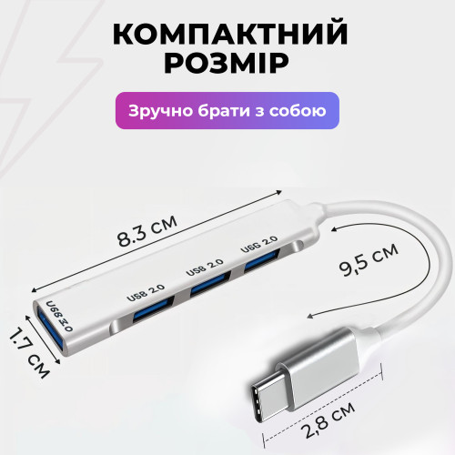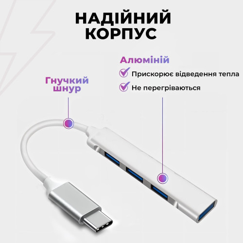 USB - хаб type c hub переходник для макбука адаптер USB HUB to 4-Port USB-A Pavlysh KA-13
