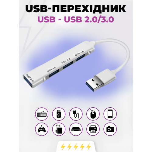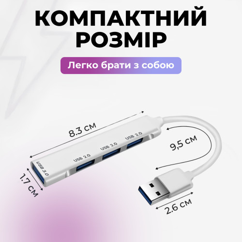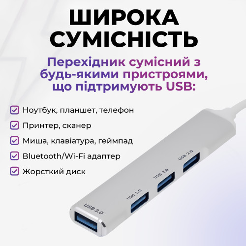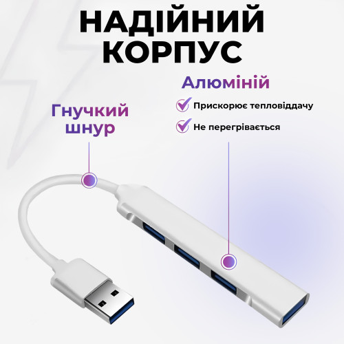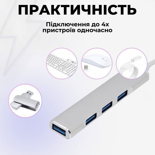 USB хаб 3.0 для MacBook версій до 2016 року USB 3.0 to 4-Port USB-A 3.0-2.0 для ноутбука Aluminium PAVLYSH (PH-A-809)