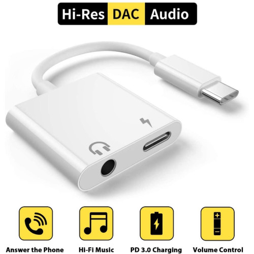 Переходник USB C to 3.5mm Headphone Adapter : предназначен для одновременного прослушивания медиаконтента через наушники со стандартным mini-jack 3.5мм аудио выходом на устройствах с USB Type-C аудио-разъемом и зарядки мобильного гаджета.