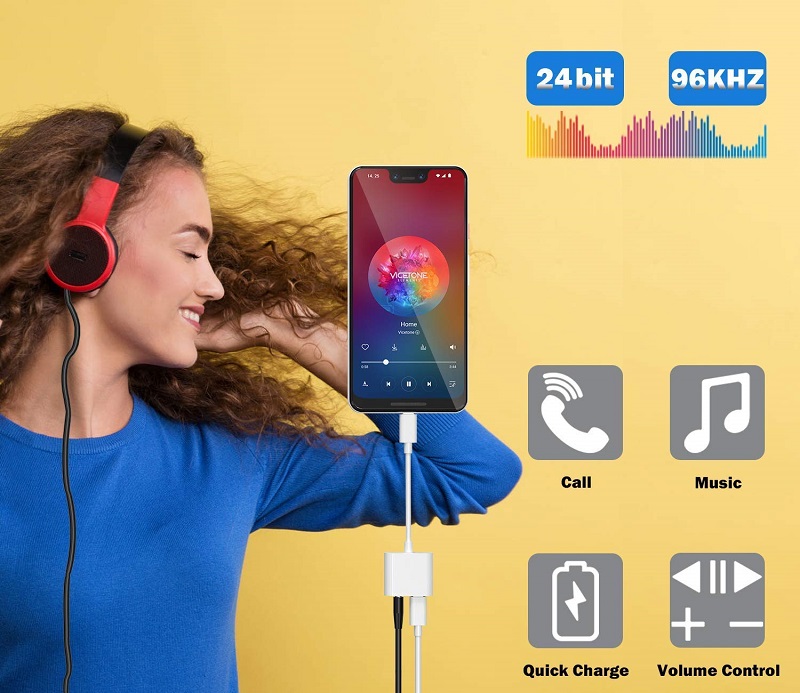Вы сможете заряжать свой смартфон или планшет и одновременно слушать музыку через наушники 3.5мм mini-jack с помощью адаптера. Обратите внимание: наш адаптер 2 в 1 не поддерживает функцию вызова.