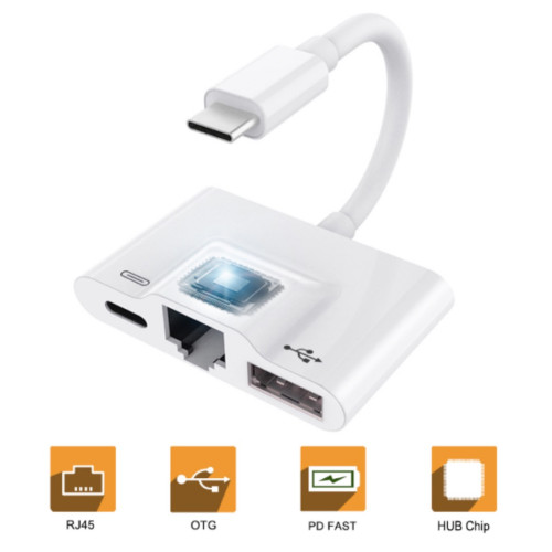 Адаптер USB Type-C to 3 in 1 Ethetnet + USB + Type-C White совместим с устройствами USB-C, такими как MacBook Pro 2019/2018/2017, MacBook, iPad Pro 2018/2019, Dell XPS 13/15, Surface Book 2, Pixelbook, Chromebook, Asus ZenBook, Lenovo Yoga 720/910 / 920, Samsung S8 / S8 Plus / Note 8 / Note 9, Samsung Tablet Tab A 10.5, Pixel / Pixel 2 и другие ноутбуки, планшеты и смартфоны с интерфейсом USB-C.