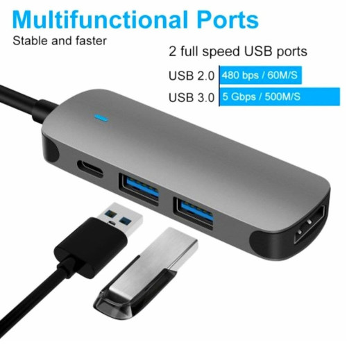 Универсальный переходник для Apple MacBook USB Type-C на USB-хаб HDMI с портом зарядки. Многофункциональное устройство способное значительно расширить возможности вашего ноутбука с интерфейсом USB-C. USB 3.0 два порта для подключения периферийных устройств и передачи больших объемов данных на скорости до 5 Гбит/с (скорость зависит от вида носителя данных), HDMI Female порт для вывода изображения с ноутбука на HDTV, монитор или проектор (для сопряжения устройств нужен HDMI кабель, не идет в комплекте). Наличие разъема USB C для подключения зарядки ноутбука освобождают Вас от необходимости ограничивать себя по времени и прерывать работу для подзарядки.