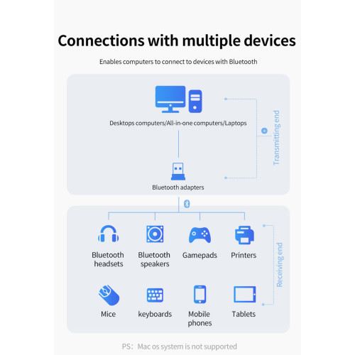 Потребляет очень мало энергии и поддерживает все распространенные модели наушников, мышек, планшетов, телефонов, колонок, джойстиков и любых других устройств поддерживающих Bluetooth технологию передачи данных.