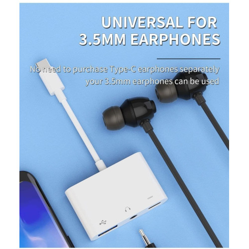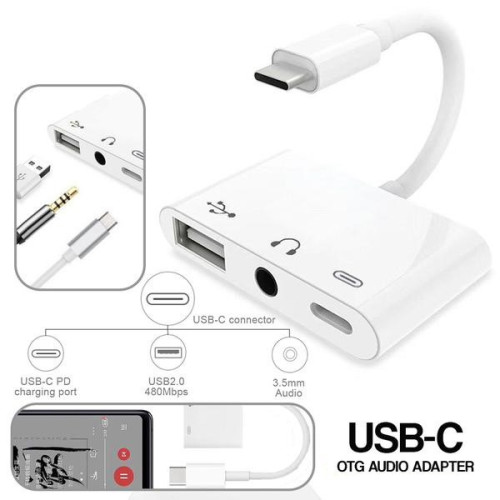 Адаптер-переходник Type-C to USB OTG +Type-C + Audio 3.5mm - слушай музыку и заряжай телефон или планшет одновременно.