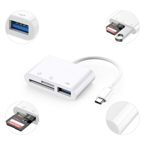 | Описание | Благодаря адаптеру можно переносить фото и видео с SD\TF карты на телефон планшет или ноутбук с Type-C разъемом. одновременно заряжая USB OTG порт переходника позволяет подключать цифровую камеру или другие внешние устройства через USB кабель |