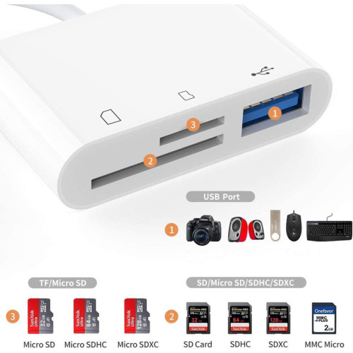 Поддержка SD / TF-карт и USB-порта одновременно: Micro sd card reader может одновременно поддерживать все устройства USB 2.0, такие как цифровые камеры, флэш-накопитель USB, клавиатура, мышь, игровая приставка и многое другое, а также может считывать все SD / TF Cards. Перенесите ваши файлы всего за несколько секунд.
