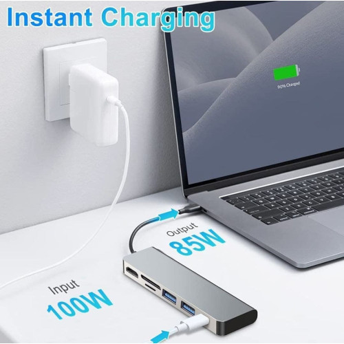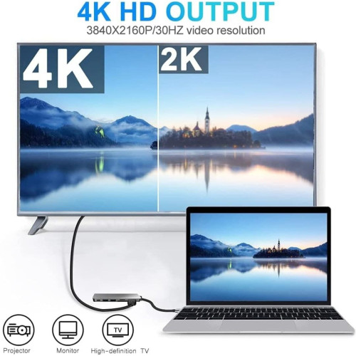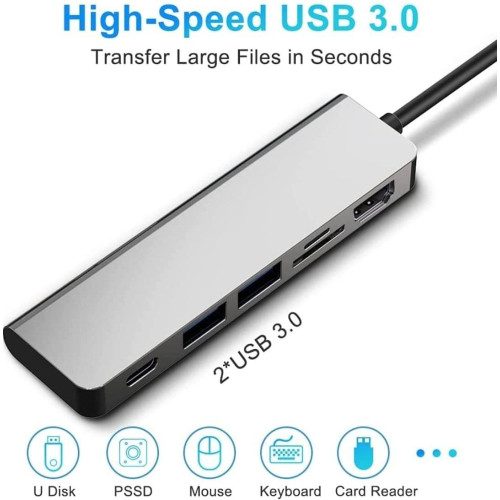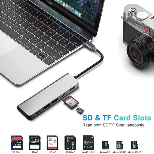 Адаптер USB-C to 2 USB 3.0 HDMI SD/TF Card Reader : превратите один порт USB-C в пять портов: порт 4K HDMI, два порта USB 3.0, слот для карты SD и слот для карты micro SD. Подключите старые периферийные устройства к новому ноутбуку USB-C для передачи данных, расширения дисплея и многого другого.