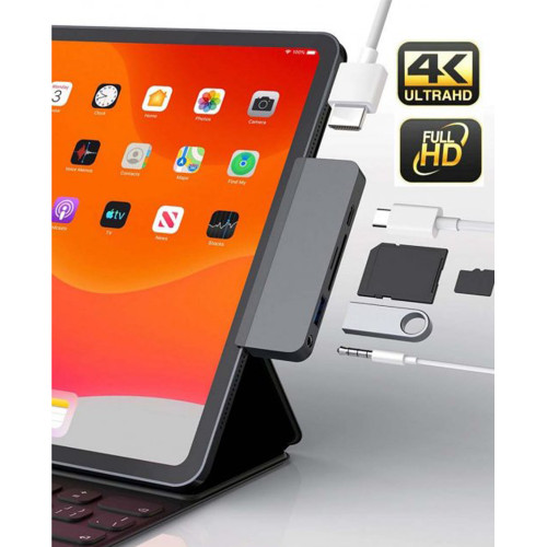 USB-C-хаб для iPad на Type-C на HDMI 1 USB 3.0 SD TF Card Reader адаптер MacBook Apple USB-C to iPad Pro hub PAVLYSH (PH-800141) : С выходом последних моделей iPad Pro стали необходимыми хабы, которые позволяют значительно расширить функциональные возможности данного производительного планшета. Концентратор USB-C 6-in-1 превращает один порт USB-C в 6 портов для различной периферии.