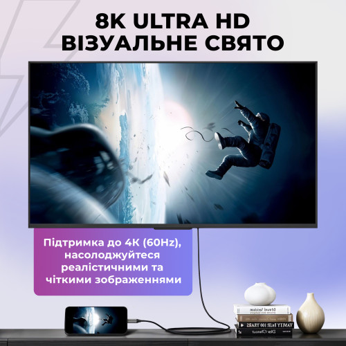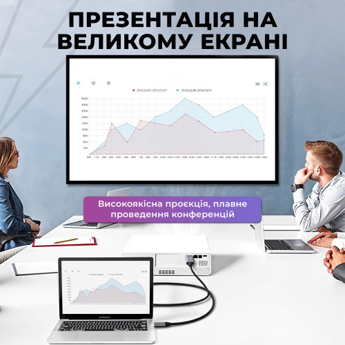 Кабель с USB-C на Digital HDMI видео интерфейс предназначен для вывода фильмов, игр, слайдов, изображений и других видов медиаконтента на большой экран, например: