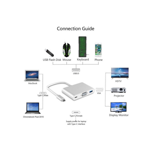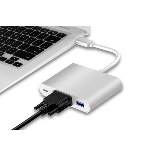 Видеоадаптер USB Type-C на VGA с USB 3.1 и USB-C портом зарядки позволяет Вам заряжать ноутбук во время трансляции изображения на большой экран монитора, проектора или HDTV телевизора. Дополнительный порт USB 3.1 открывает перед вами дополнительные коммуникативные возможности: подключение различных периферийных устройств, USB Flash накопителей, синхронизации ноутбука и смартфона, планшета или цифровой камеры. Важно отметить что все порты могут использоваться одновременно, так что возможности Вашего Macbook буду использованы максимально полно и эффективно.