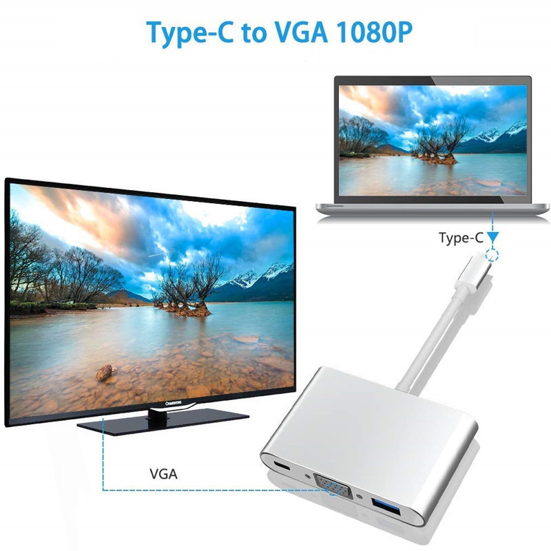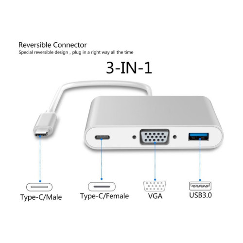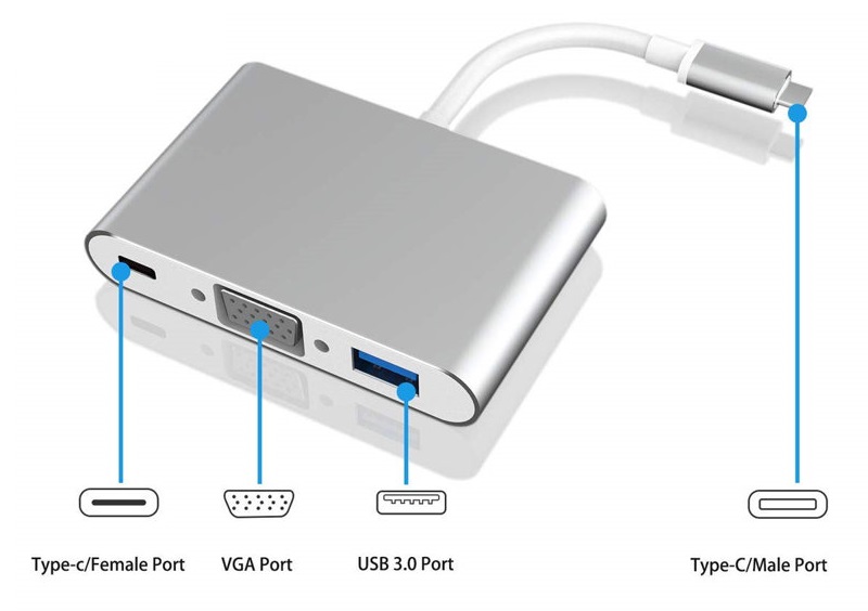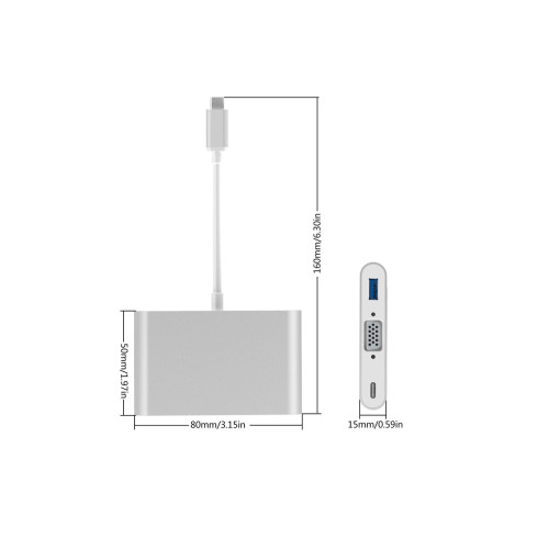 Характеристики конвертера USB Type - C на VGA + USB + USB-C порт зарядки :
