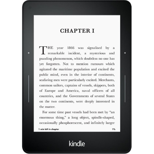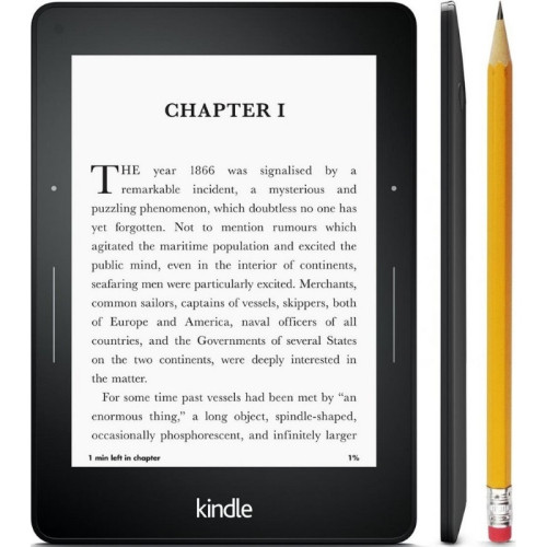 Электронная книга Amazon Kindle Voyage получила 6-дюймовый сенсорный дисплей с разрешением в 1440 х 1080 пикселей. Модель располагает 4 гигабайтами встроенной флэш-памяти и модулем беспроводной связи Wi-Fi 802.11n. Благодаря небольшому весу, книга будет совсем незаметной во время транспортировки. Она располагает USB-гнездом для подзарядки и работы с другими устройствами. Поддерживает следующие форматы: PDF, TXT, Kindle, AA, AAX, MOBI, PRC, HTML, DOC. В ряд дополнительных преимуществ входит вторичная защита дисплея, возможность поиска фразы по тексту, возможность чтения форматов путем конвертации.