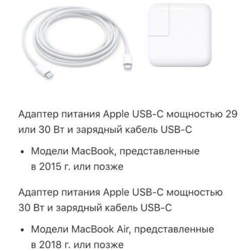Блок питания Apple USB Type-C MR2A2 подходит для целого ряда яблочных продуктов. Приводим полный перечень моделейБлок питания Apple 30W USB-C Power Adapter совместим с Macbook: