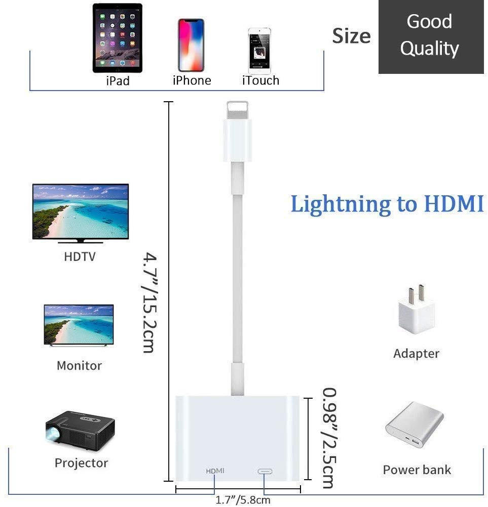 Переходник Lightning to HDMI обеспечивает поддержку следующих устройств: iPhone 11, iPhone 11 Pro,iPhone 11 Pro Max, iPhone XS,iPhone XS Max, iPhone X, iPhone 8/8 Plus, iPhone 7/7 Plus, iPhone 6 / 6S, iPhone 6 Plus / 6S Plus, iPhone 5 / 5S / 5C / SE; iPad Air, iPad Pro, iPad Mini, ipod Touch 5th / ipod Touch 6th. Поддерживает разрешение до 1920 на 1080 с сохранением качества передачи звука.