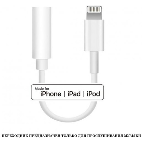 Переходник Apple Lightning to 3.5mm позволяет использовать наушники с разъемом 3,5 мм с мобильными устройствами Apple iPhone, iPad, iPod c Lightning аудио разъемом.