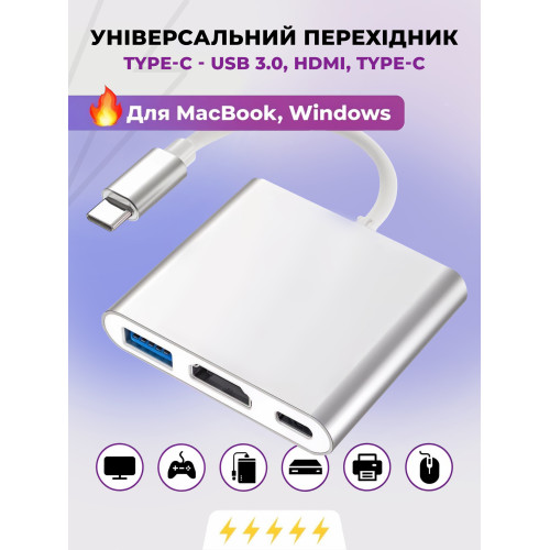 Многопортовый адаптер USB-С на 4K HDMI USB порт с портом зарядки Type-C расширяет возможности MacBook или ноутбука. Три порта могут работать одновременно. Добавьте возможность подключения периферийных устройств через USB интерфейс, а также вывод видео на большой экран монитора, проектора или телевизора через HDMI порт