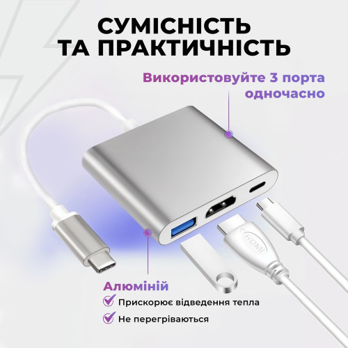 USB хаб на HDMI и USB для Type-C адаптер для USB-C на телевизор и флешку кабель для ТV на HDMI 1080P и USB PAVLYSH PH-28