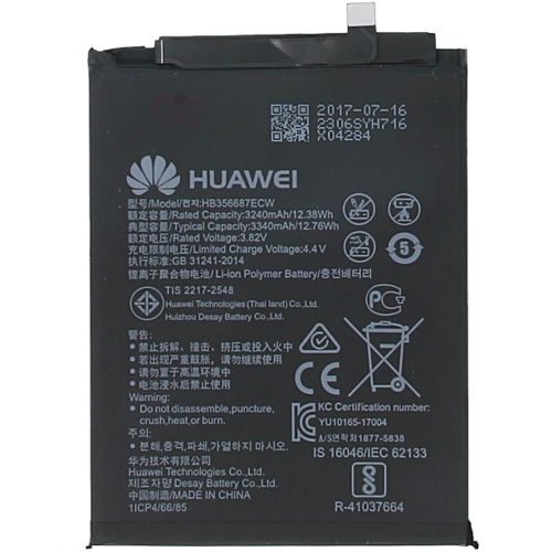 Аккумулятор Huawei HB356687ECW (3340 mAh) 100% подходит для Huawei Mate 10 Lite (RNE-L01, RNE-L02, RNE-L03, RNE-L21, RNE-L22, RNE-L23) – это батарея, которая обладает достаточной емкостью и мощностью для обеспечения бесперебойной работы Huawei Mate 10 Lite на протяжении всего дня. АКБ Huawei HB356687ECW подключается к плате телефона Huawei Mate 10 Lite с помощью коннекторного шлейфа. Батарея Huawei HB356687ECW повторяет все физические и функциональные параметры родного аккумулятора, не обладает эффектом памяти. Замена старой аккумуляторной батареи HB356687ECW в Huawei Mate 10 Lite позволяет в полной мере восстановить автономность смартфона.