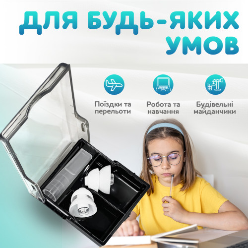 Так же беруши размещаются в удобном переносном футляре, который будет очень незаменим в путешествиях, при переноске. В комплекте 2 пары. Внимание! Ушные вкладыши, которые специально разработаны для сна не могут подавлять все шумы, это невозможно практически, ведь звук проходит не только через ушной канал, но и через все тело (особенно ударные звуки). Данные беруши обладают максимальным подавлением шума для многоразовых берушей (SNR 30-33дБ), выше только у одноразовых полиуретановых! Данный показатель SNR означает, что в среднем на 30-33дБ будет уменьшен шум, но эта величина приблизительная, так как все зависит от частоты звука, поэтому подавление шума может быть как выше, так и ниже. Для того чтобы понять какой у вас уровень шума, следует загрузить на смартфон любое приложение шумомер по измерению звука и станет ясно, на сколько эти беруши вам помогут.