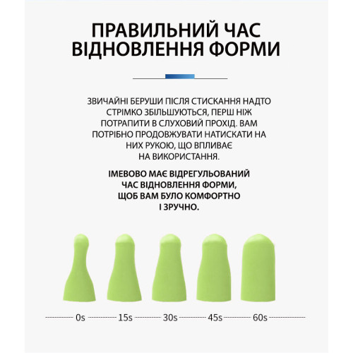 Беруші iMebobo Pavlish PA-PAK1BLUE має відрегульований час відновлення форми, щоб Вам було комфортно і зручно.