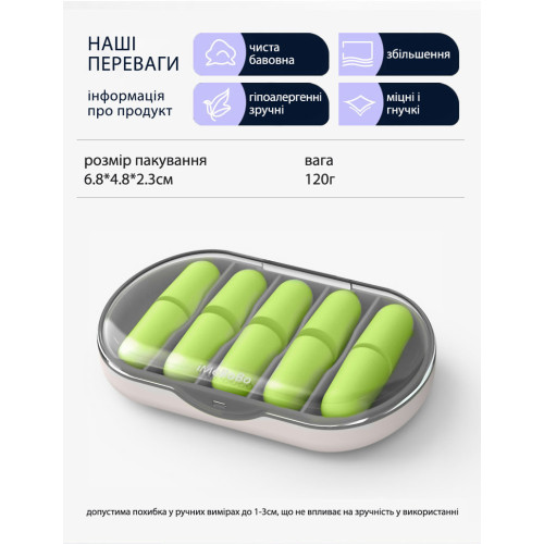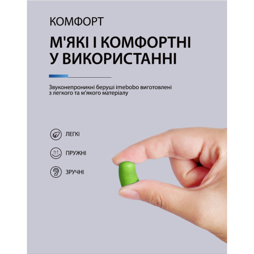М'які і комфортні у використанні. Беруші виготовлені з легкого та м'якого матеріалу, звуконепроникні.