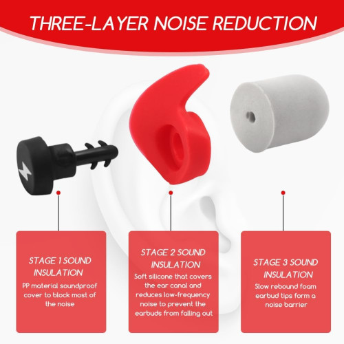 Беруши для сна с шумоподавлением от храпа и сильного шума Многоразовые защита слуха, для Сна, Работы, Концертов красные Pavlysh СС-33