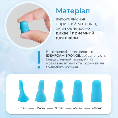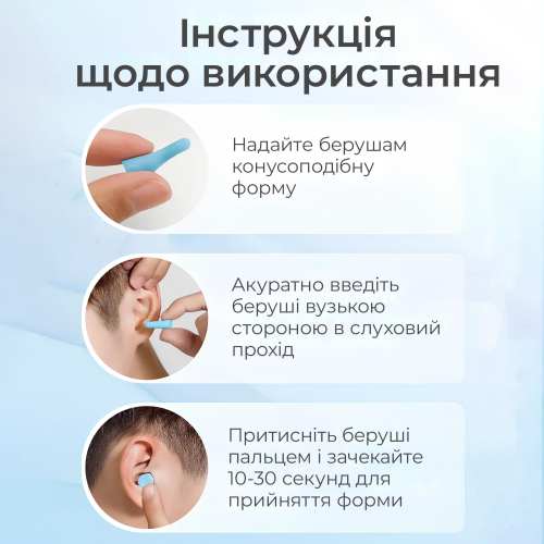 Звичайні беруши після стискання надто стрімко збільшуються, перш ніж потрапити в слуховий прохід. Вам потрібно продовжувати натискати на них рукою, що впливає на їх використання. Беруші мають відрегульований час відновлення форми, щоб Вам було комфортно і зручно.