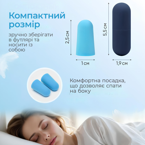 М'які беруші, зручні в носінні, без відчуття стороннього тіла, відкриті вуха. Вибраний губчастий матеріал з низькою щільністю, меншим зазором і більшим шумозаглушенням. Завдяки чому, Ваш сон буде міцним до самого ранку.
