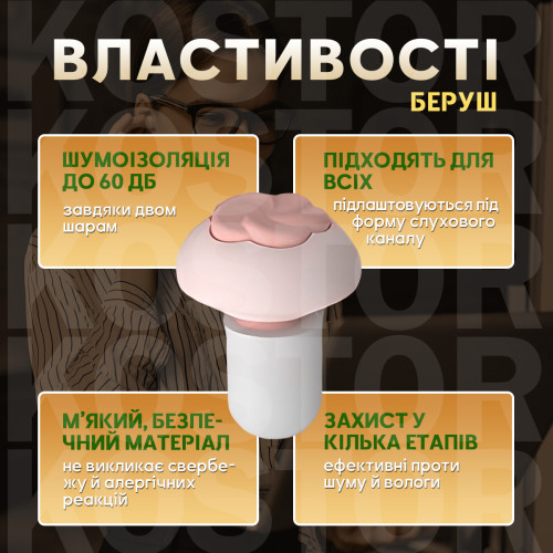 Беруши с шумоизоляцией многоразовые защита слуха Pavlysh для Сна, Работы, Концертов (PA-PAK4ROSE)