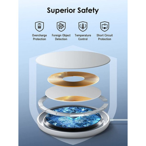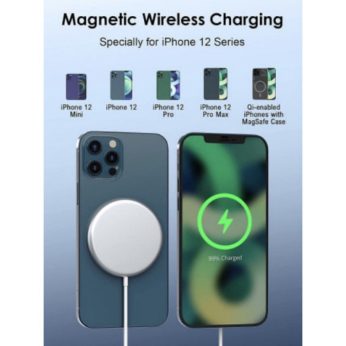 Зарядка Wireless Charger MagSafe для iPhone iPod и airPods – удобный и быстрый инструмент для зарядки гаджетов поддерживающих беспроводную зарядку. Теперь благодаря специальной технологии центрирования катушек магниты надежно фиксируются на корпусе смартфона или зарядного кейса обеспечивая надежный контакт и быструю зарядку.