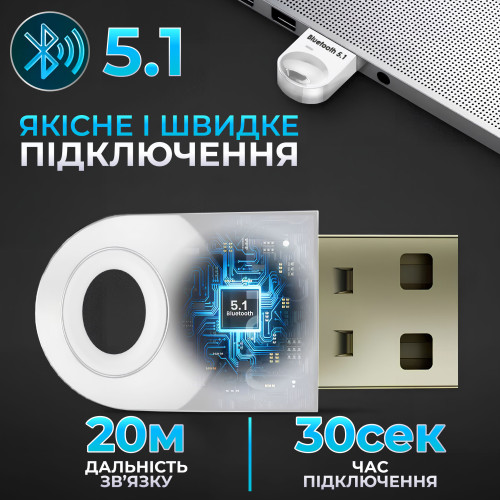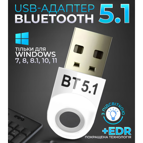 Bluetooth адаптер 5.1 + EDR LED блютуз адаптер для комп'ютера ноутбука клавиатуры мыши принтеров динамиков наушников Windows 11/10/8.1/8/7 Pavlysh BB-93
