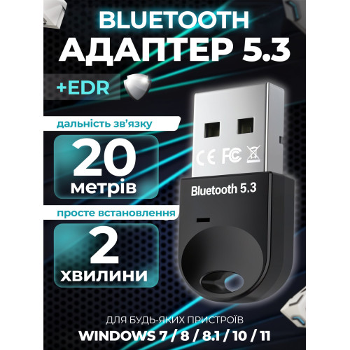 Bluetooth адаптер 5.3 + EDR блютуз адаптер для комп'ютера ноутбука мыши клавиатуры принтеров динамиков наушников Windows 11/10/8.1/8/7/XP Pavlush YT-78