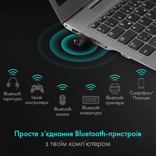 Bluetooth адаптер для ПК, Ноутбука Pavlysh USB Bluetooth 5.1 +EDR Black (PG-PAK-7) - Підтримує всі версії операційних систем, такі як: Windows 11/ 10/ 8.1/ 8/ 7 та забезпечує бездротове з'єднання з широким спектром пристроїв, таких як комп'ютери, принтери, телефони, гарнітури, динаміки, клавіатури, контролери та багато іншого.