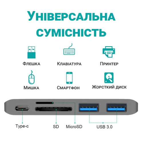 Багатофункціональний хаб для USB Type-C - 1 шт.
