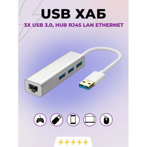 Отсутствуют USB порты или их недостаточно? Адаптер USB to USB 3.0 Hub with RJ45 Port предназначен для того, чтобы решить эту проблему. Не требует настройки или скачивания специальных приложений. Просто подключите его к ЮСБ разъему, подождите несколько секунд и операционная система сама определит устройство и установит стандартный драйвер (единоразово при первом подключении). Вы можете задействовать все 3 USB порта одновременно для переноса информации или подключения внешних устройств.