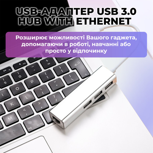 Адаптер USB to USB 3.0 Hub with Ethernet расширяет возможности Вашего гаджета, помогая в работе, учебе или просто в отдыхе.